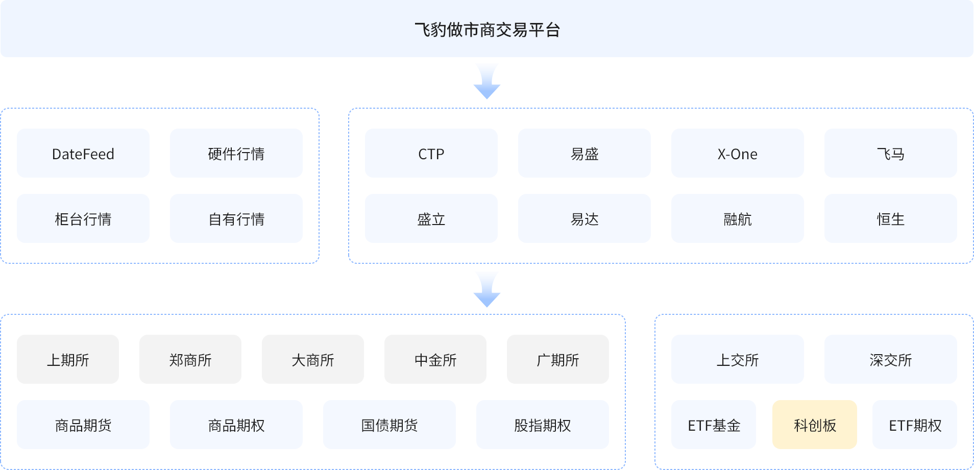 在業(yè)務(wù)范圍上,飛豹平臺覆蓋包含中金所的國債期貨及股指期權(quán),上期所、廣期所、鄭商所、大商所的商品期貨、商品期權(quán),同時支持上交所、深交所、北交所的股票、ETF基金、ETF期權(quán)及公募Reits等業(yè)務(wù)品種,為用戶提供全面的交易支持。